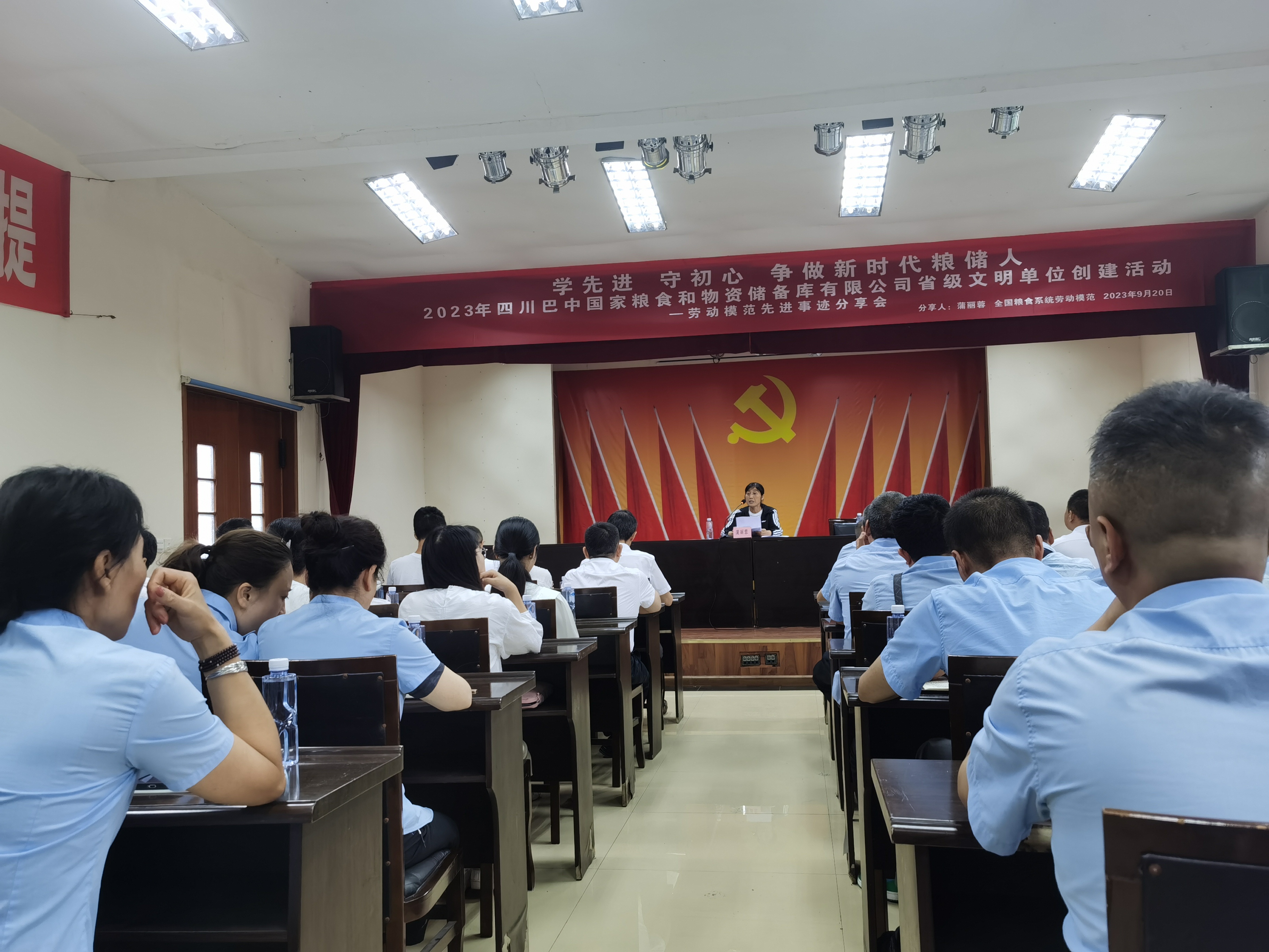 宣講會(huì)上,蒲麗蓉同志從“一段經(jīng)歷,終身記憶;一次選擇,終身堅(jiān)守;一個(gè)獎(jiǎng)杯,終身鞭策;一次代表,終身表率”四個(gè)方面分享了她的生活閱歷和工作經(jīng)歷及參加黨的二十大的所見(jiàn)所聞所感。她在糧食戰(zhàn)線工作的26年間,始終秉承“寧流千滴汗,不損一粒糧”的初心使命,用忠誠(chéng)、擔(dān)當(dāng)、奉獻(xiàn)持續(xù)擦亮共產(chǎn)黨員的底色,盡職盡責(zé)、勤儉奉獻(xiàn)。宣講結(jié)束,蒲麗蓉同志深入儲(chǔ)糧倉(cāng)間,與公司保管員熱情分享她的管糧守糧經(jīng)驗(yàn),對(duì)提出的問(wèn)題一一答疑解惑,為公司安全儲(chǔ)糧提供了寶貴經(jīng)驗(yàn)。